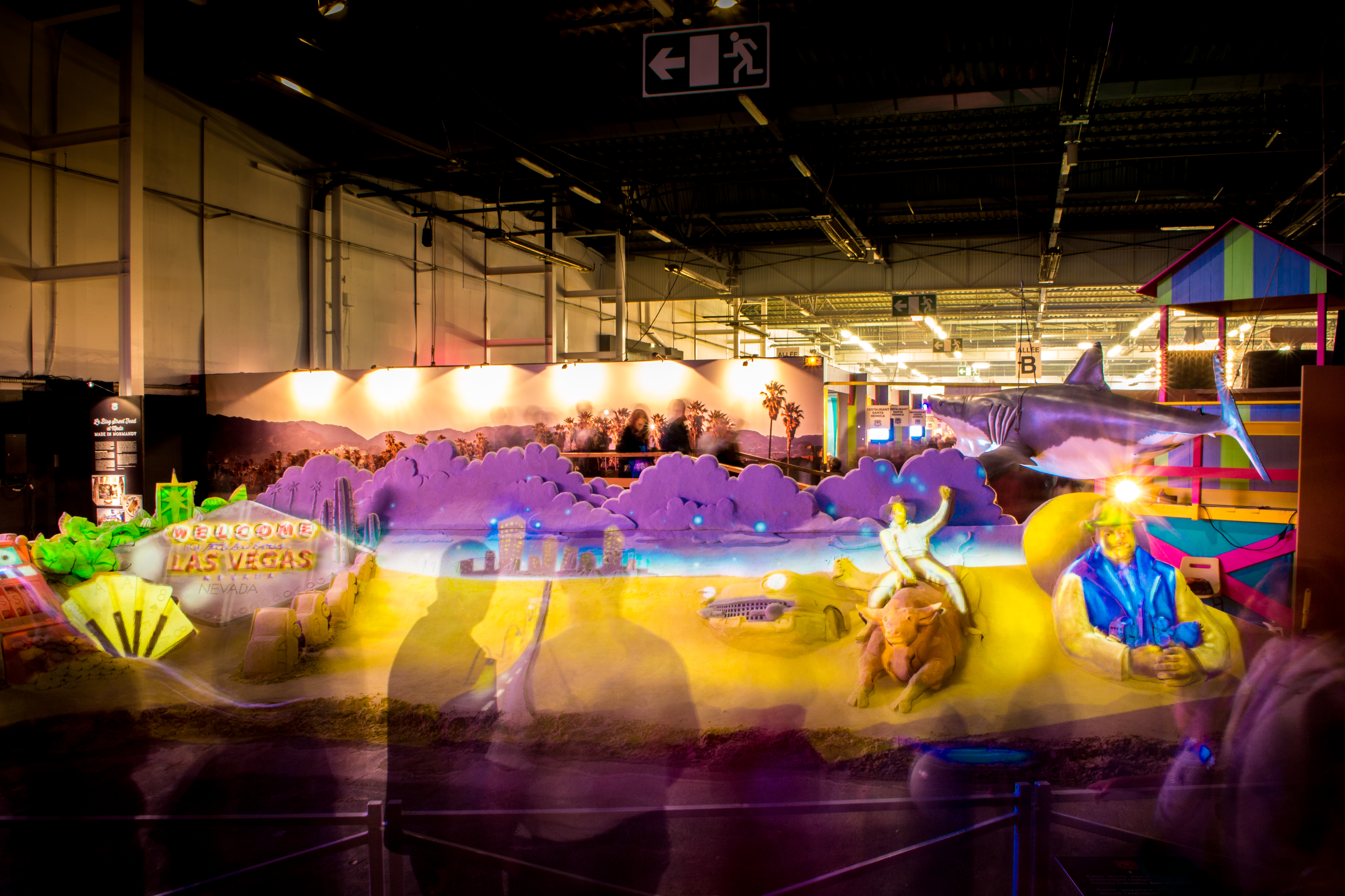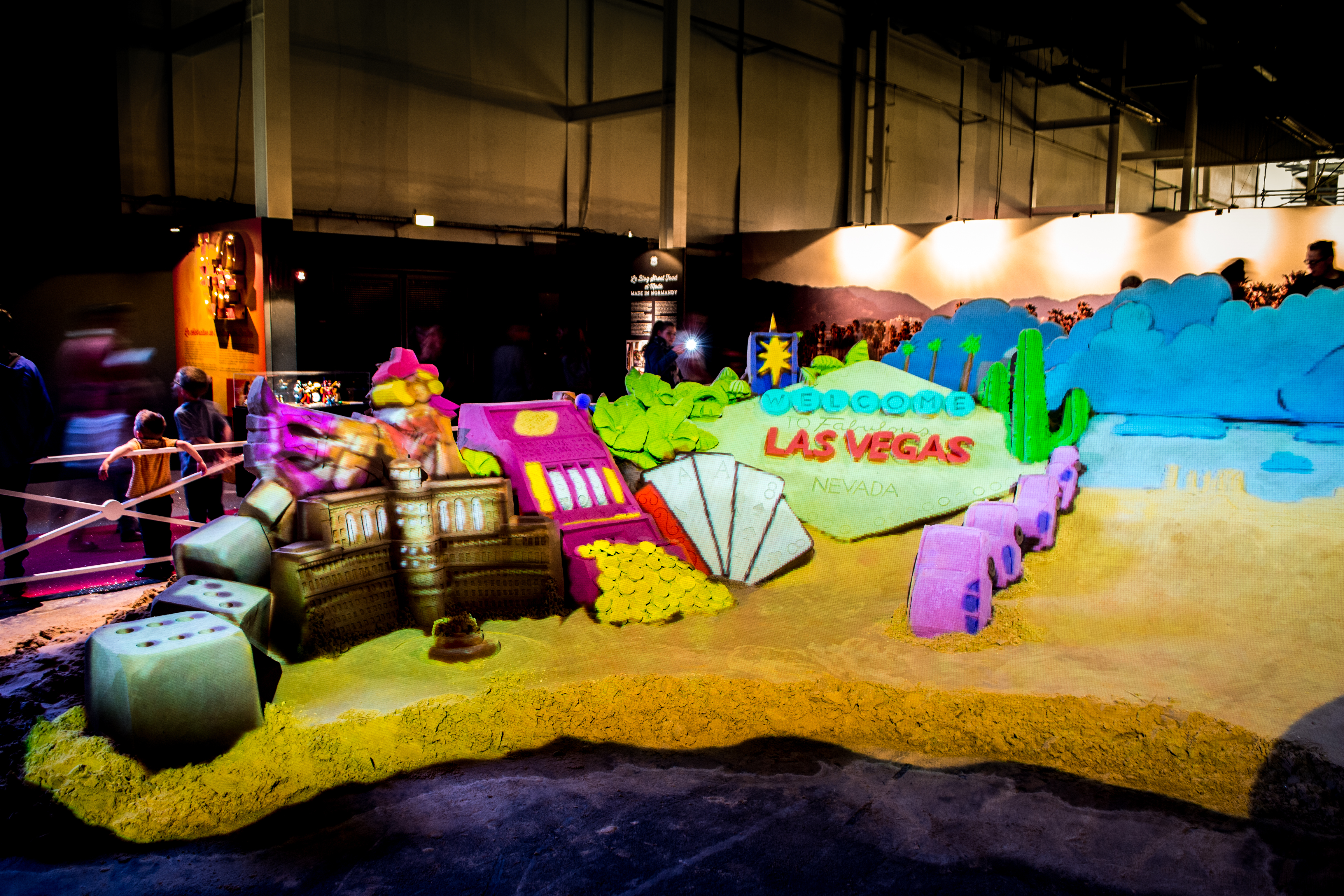 A l’occasion du Festival International de Caen : « Sur la Route de l’Amérique », nous avons eu pu réaliser un mapping vidéo hors du commun sur les sculptures de sable du plasticien canadien Dale Murdock. Déjà expérimenté avec le collectif Image Sorbet sur les plages normandes, le mapping sur le sable offre les mêmes caractéristiques que le mapping sur bâtiment en ayant le charme d’une texture friable et organique.