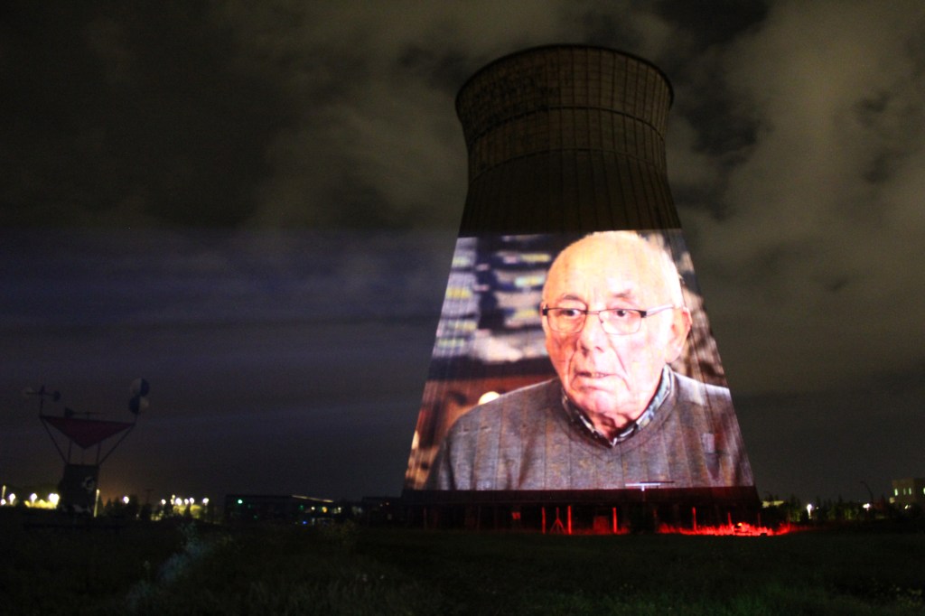 Premiers calages de video projection / mapping sur le réfrigérant de l’ancienne Société Métallurgique de Normandie hier soir dans le cadre du Concerto en Lamineur qui aura lieu le 30 juin. Evénement gratuit qui réunira 30 musiciens au pied du bâtiment éclairé à 360° accompagné de la projection simultanée du documentaire réalisé par Estelle Tredup autour de la mémoire ouvrière.