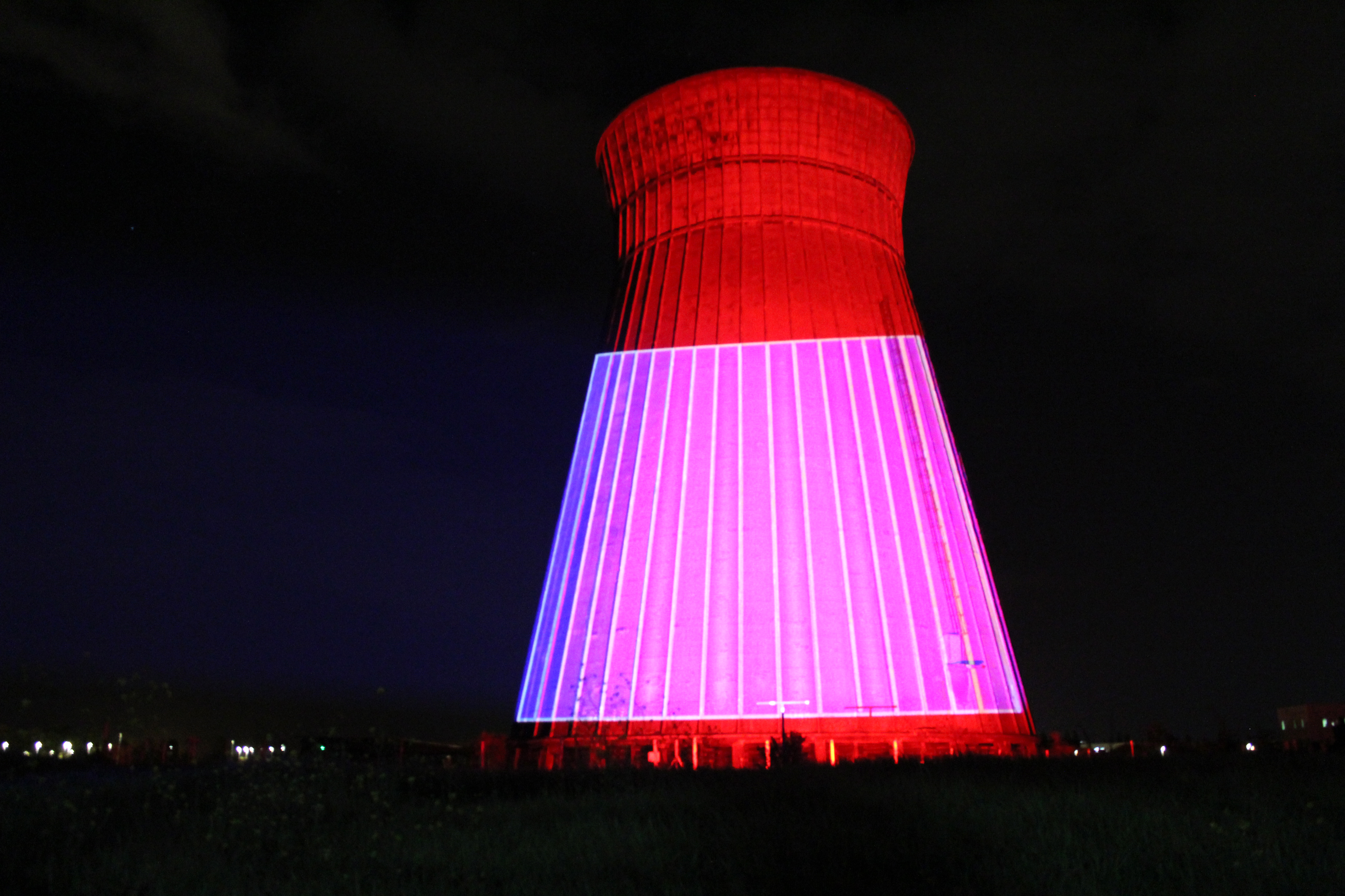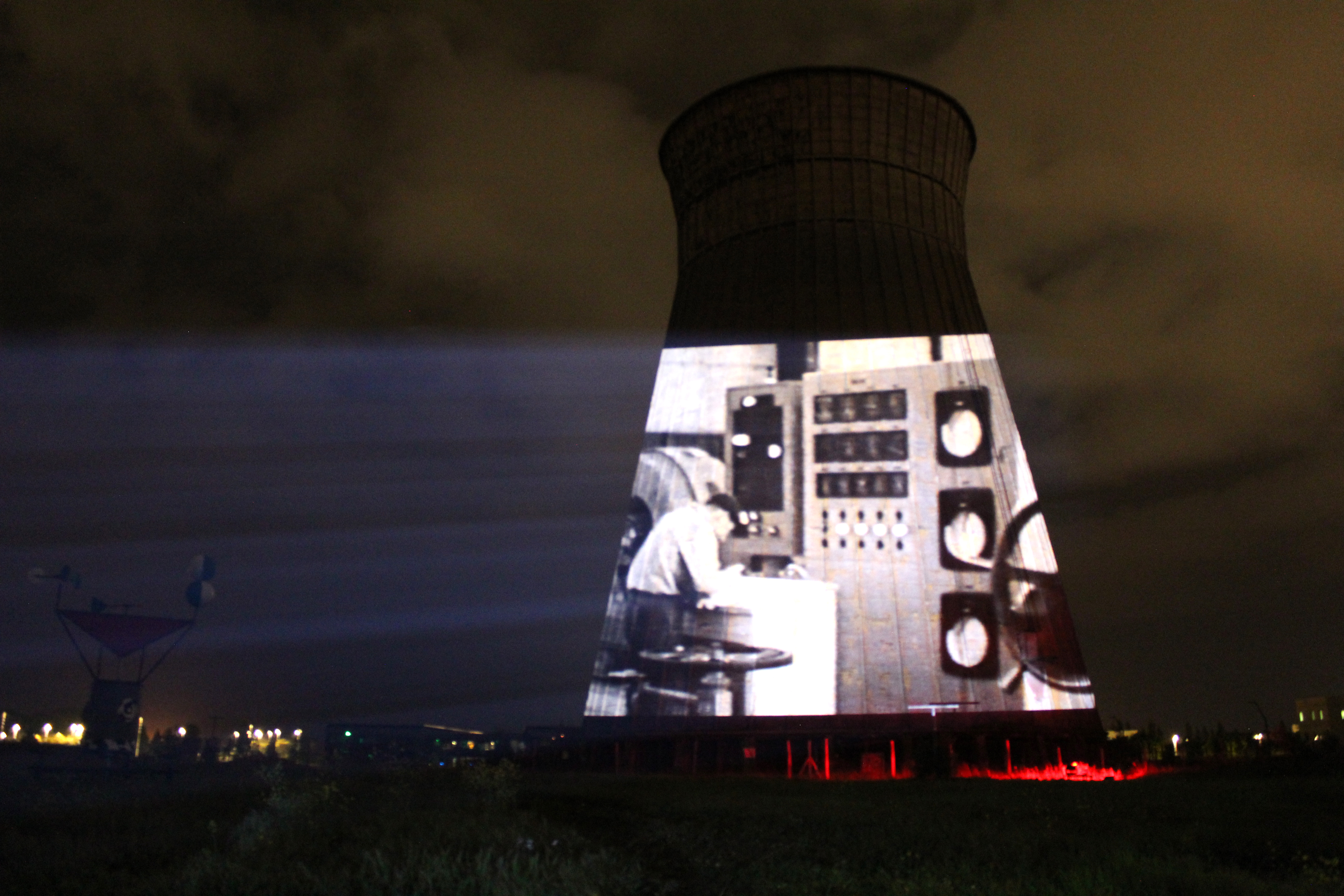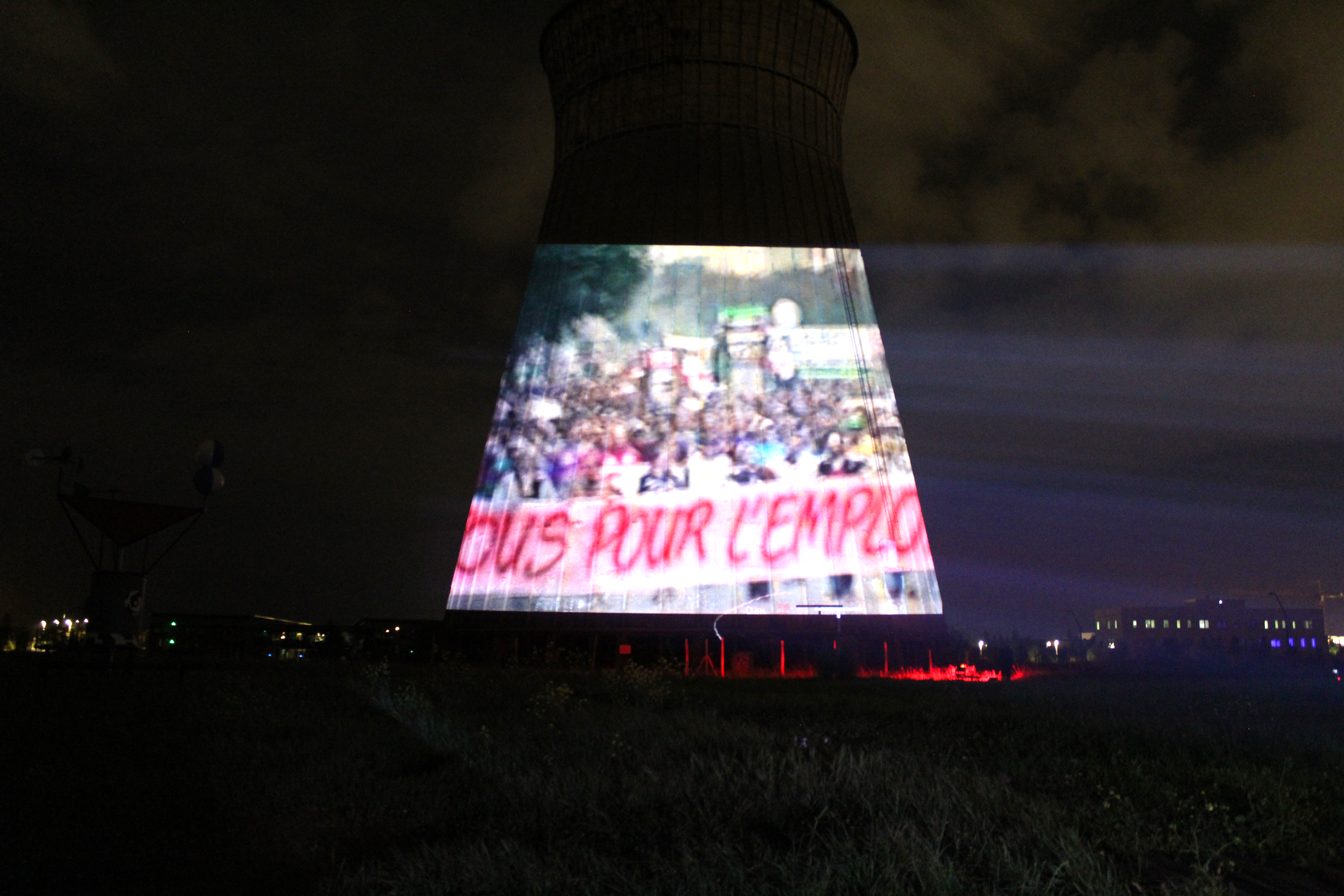 Premiers calages de video projection / mapping sur le réfrigérant de l’ancienne Société Métallurgique de Normandie hier soir dans le cadre du Concerto en Lamineur qui aura lieu le 30 juin. Evénement gratuit qui réunira 30 musiciens au pied du bâtiment éclairé à 360° accompagné de la projection simultanée du documentaire réalisé par Estelle Tredup autour de la mémoire ouvrière.