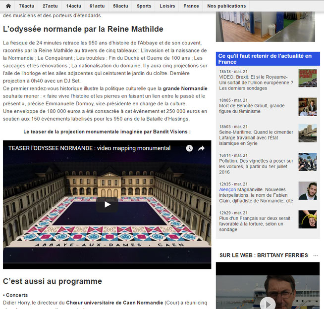 France 3 mapping video Abbaye-Aux-Dames, Caen