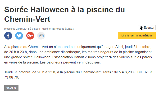 installation video piscine du Chemin Vert, Caen